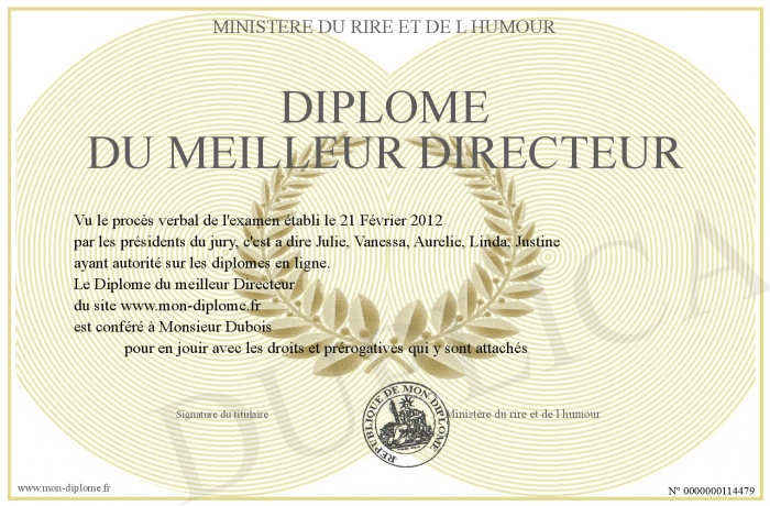 Envoyez par email votre Diplôme du meilleur Directeur personalisé