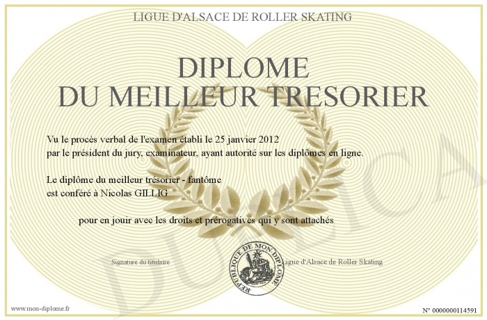 Envoyez par email votre Diplôme du meilleur trésorier personalisé