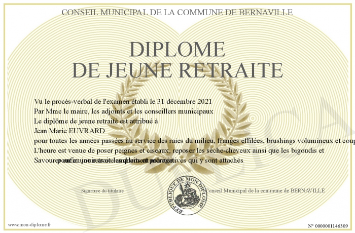 Envoyez par email votre Diplôme de jeune retraité personalisé