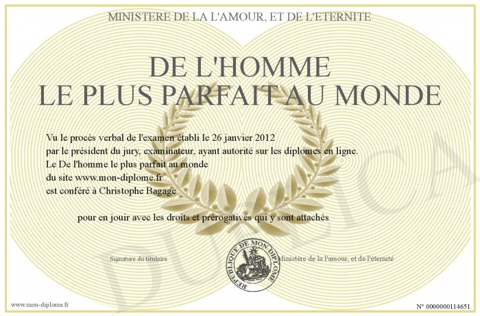 Envoyez par email votre De l'homme le plus parfait au monde personalisé