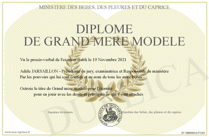 Envoyez par email votre Diplôme de Grand Mère modèle personalisé
