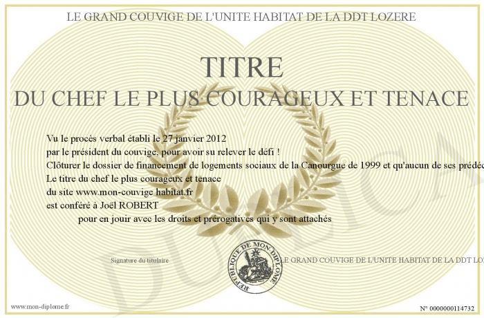 Envoyez par email votre titre du chef le plus courageux et tenace personalisé
