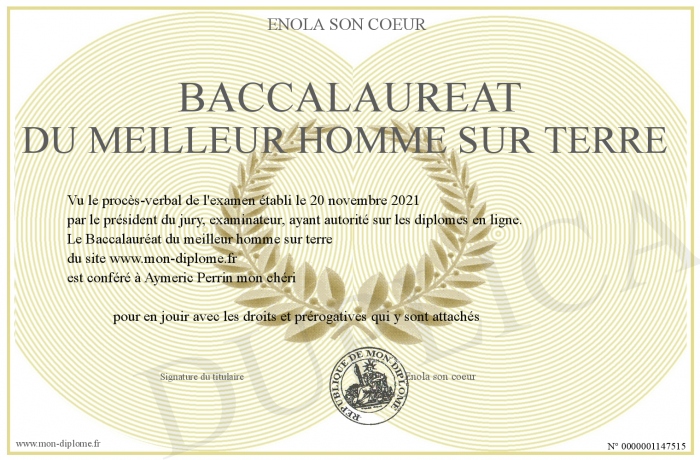 Envoyez par email votre Baccalauréat du meilleur homme sur terre personalisé