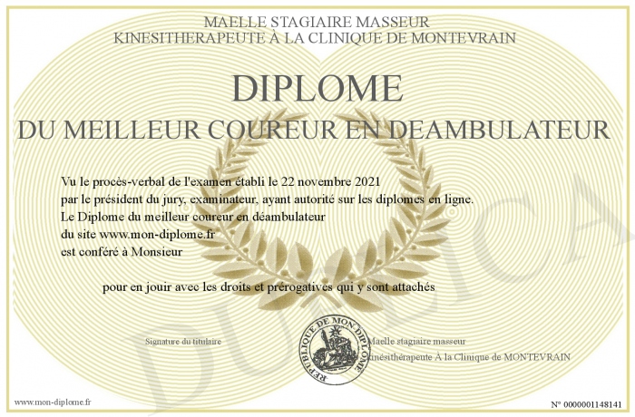 Envoyez par email votre Diplôme du meilleur coureur en déambulateur personalisé