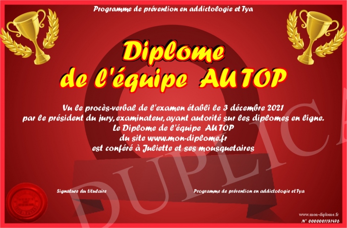 Envoyez par email votre Diplôme de l'équipe AU TOP personalisé
