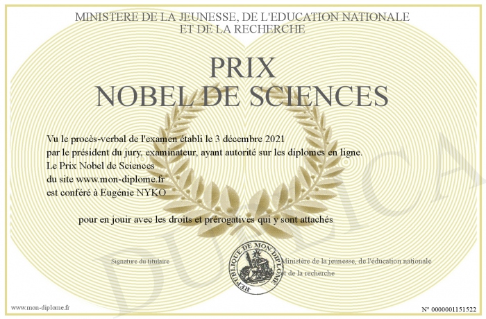 Envoyez par email votre Prix Nobel de Sciences personalisé