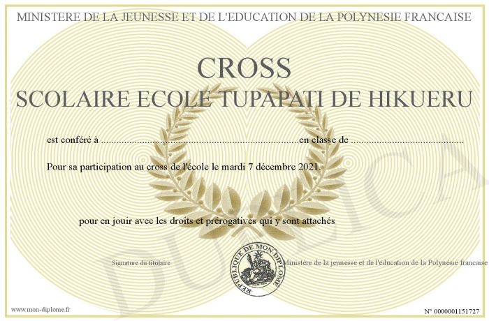 Envoyez par email votre CROSS SCOLAIRE ECOLE TUPAPATI DE HIKUERU personalisé