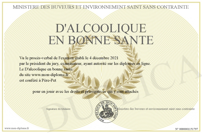Envoyez par email votre D'alcoolique en bonne santé personalisé