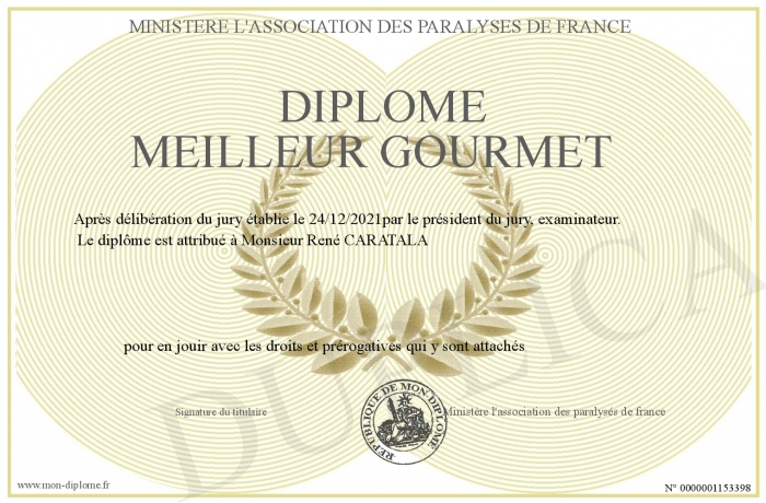 Envoyez par email votre Diplôme meilleur Gourmet personalisé