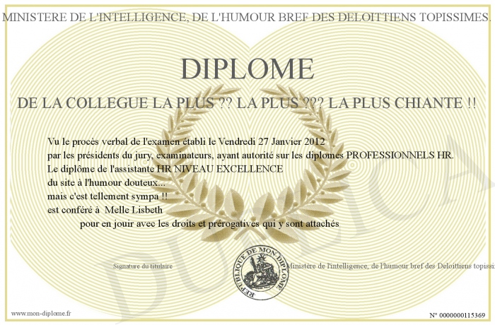 Envoyez par email votre Diplôme de la collègue la plus ?? la plus ??? la plus chiante !! personalisé