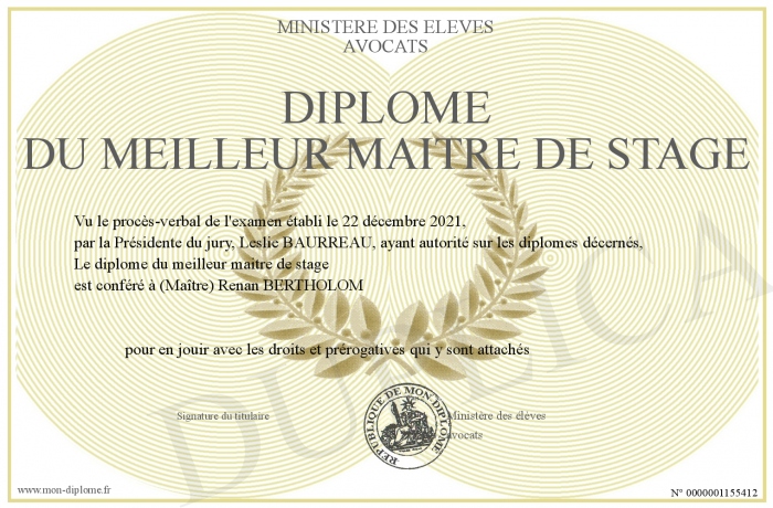 Envoyez par email votre diplôme du meilleur maitre de stage personalisé