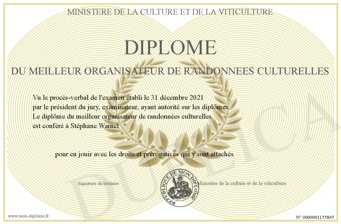Envoyez par email votre Diplôme du meilleur organisateur de randonnées culturelles personalisé