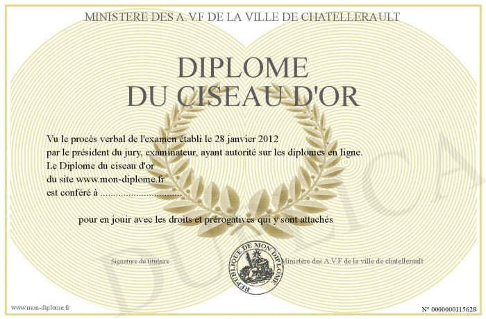 Envoyez par email votre Diplôme du ciseau d'or personalisé