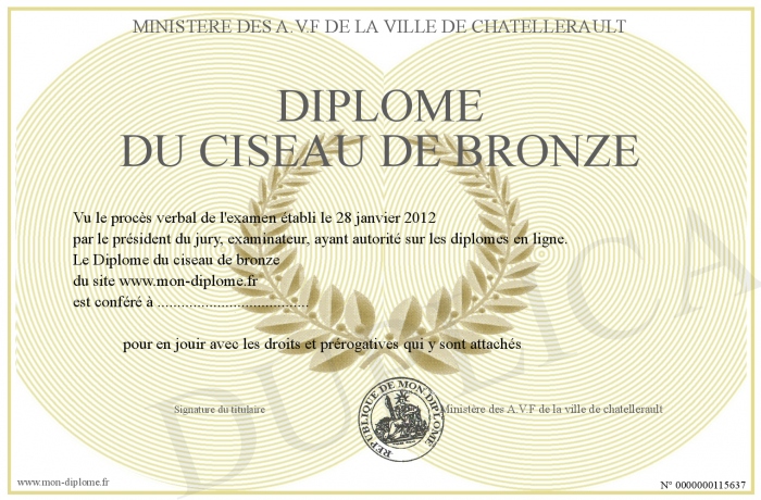 Envoyez par email votre Diplome du ciseau de bronze personalisé