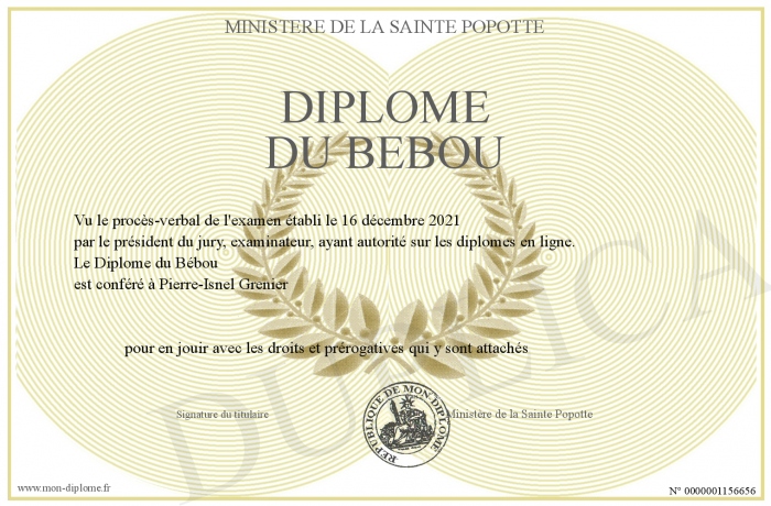Envoyez par email votre Diplôme du Bébou personalisé