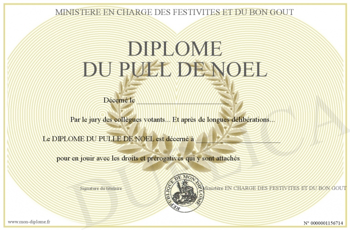 Envoyez par email votre Diplôme DU PULL DE NOEL personalisé