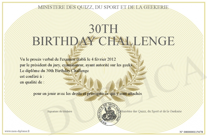Envoyez par email votre 30th Birthday Challenge personalisé