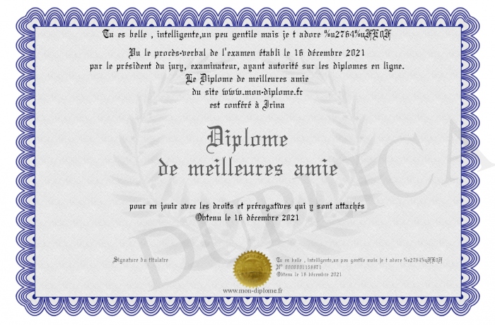 Envoyez par email votre Diplôme de meilleures amie personalisé