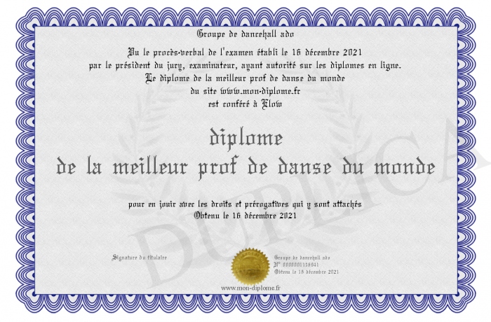 Envoyez par email votre diplôme de la meilleur prof de danse du monde personalisé
