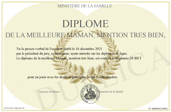 Envoyez par email votre diplôme de la meilleure Maman, mention très bien, personalisé