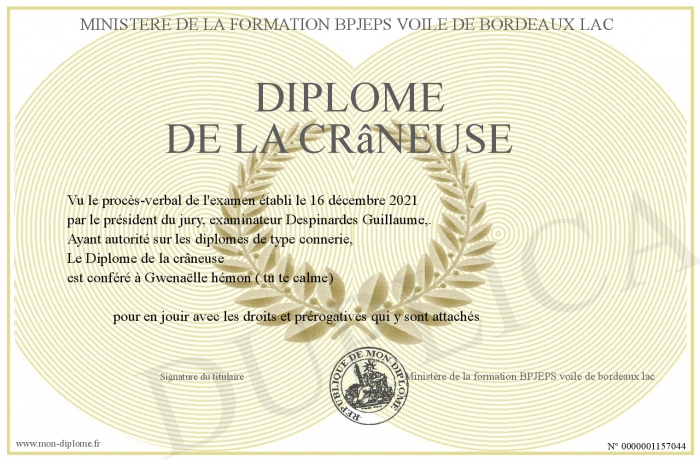 Envoyez par email votre Diplôme de la crâneuse personalisé