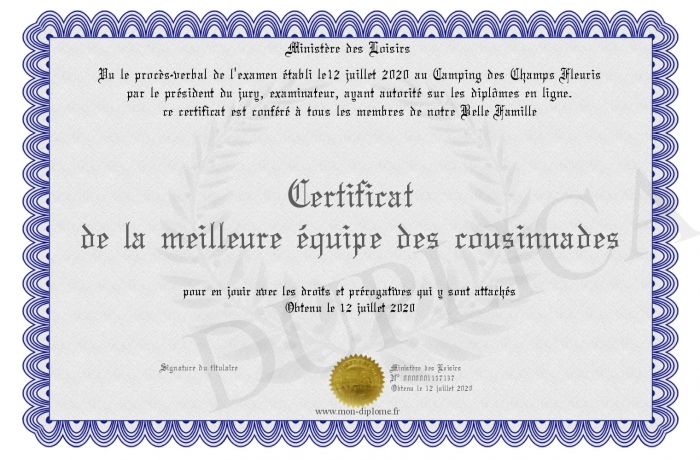 Envoyez par email votre Certificat de la meilleure équipe des cousinnades personalisé