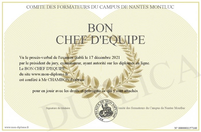 Envoyez par email votre BON CHEF D'EQUIPE personalisé