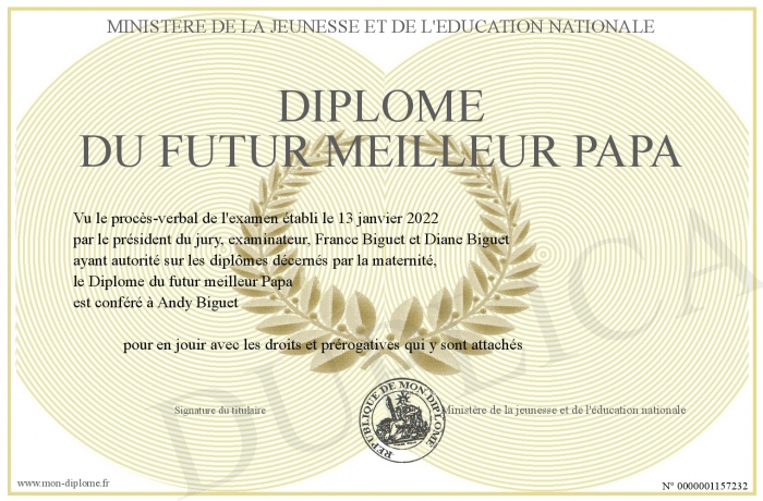 Envoyez par email votre Diplôme du futur meilleur Papa personalisé
