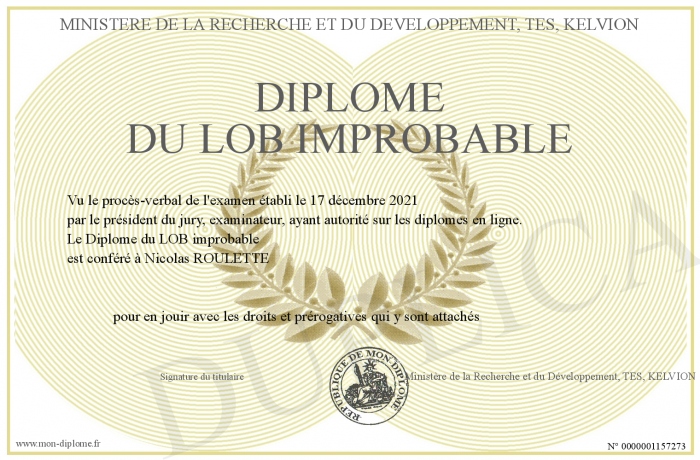 Envoyez par email votre Diplôme du LOB improbable personalisé