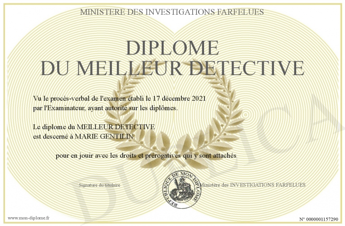 Envoyez par email votre diplome du MEILLEUR DETECTIVE personalisé
