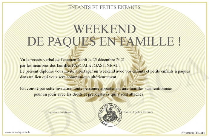 Envoyez par email votre WEEKEND DE PAQUES EN FAMILLE ! personalisé