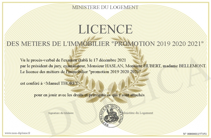 Envoyez par email votre licence des métiers de l'immobilier -promotion 2019 2020 2021- personalisé
