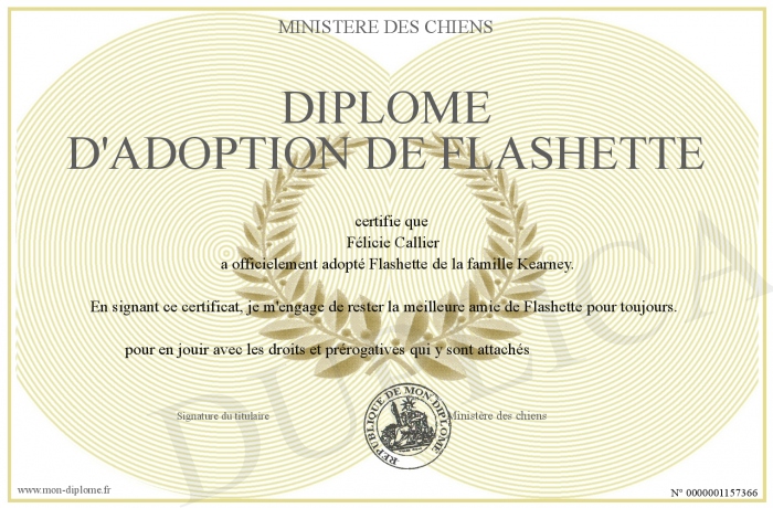Envoyez par email votre Diplôme d'adoption de Flashette personalisé