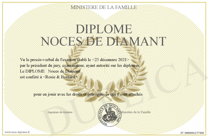 Envoyez par email votre DIPLOME Noces de Diamant personalisé