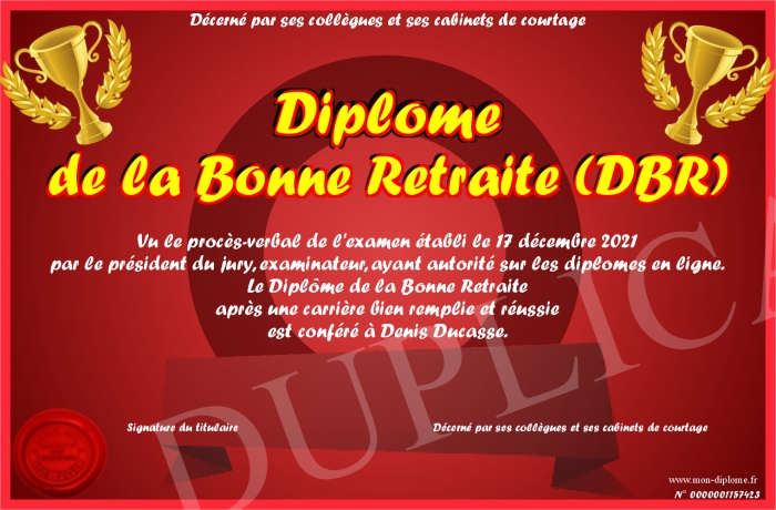 Envoyez par email votre Diplôme de la Bonne Retraite (DBR) personalisé