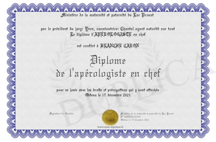 Envoyez par email votre Diplôme de l'apérologiste en chef personalisé