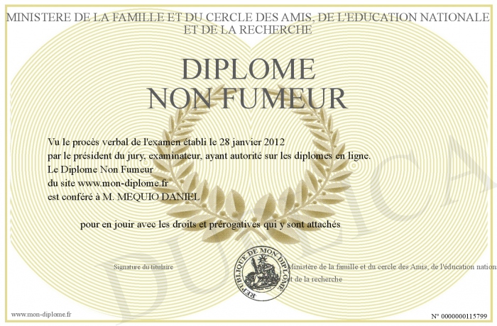 Envoyez par email votre Diplôme Non Fumeur personalisé