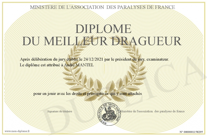 Envoyez par email votre Diplôme du meilleur dragueur personalisé