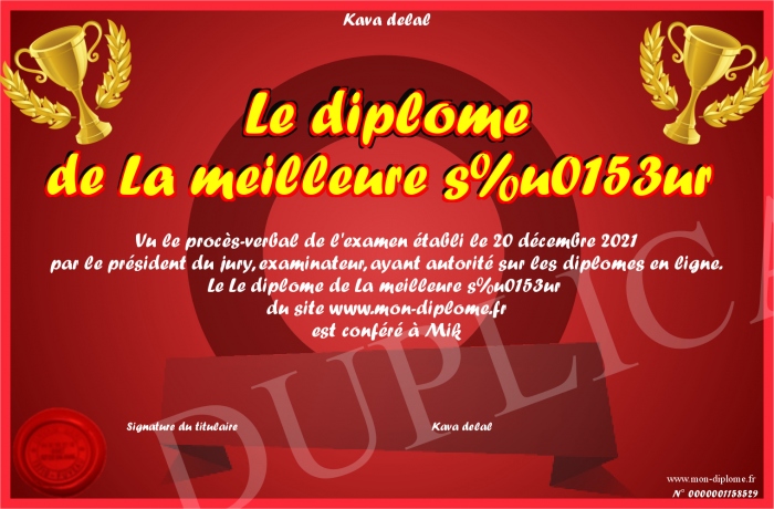Envoyez par email votre Le diplôme de La meilleure soeur personalisé