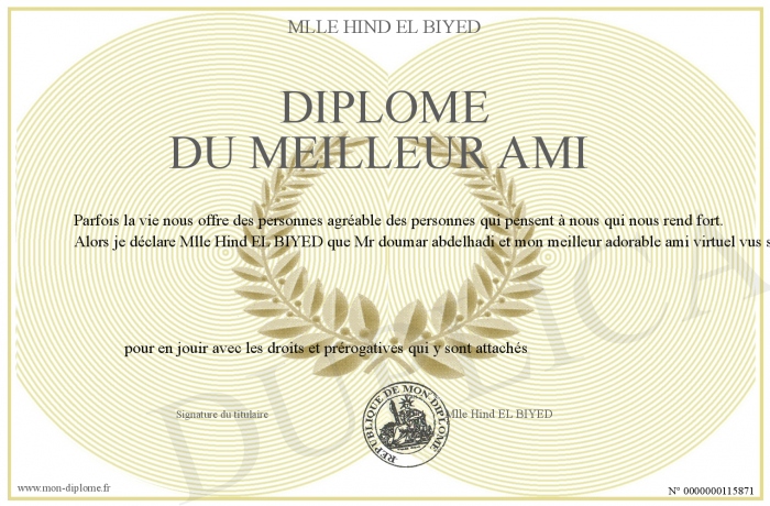 Envoyez par email votre Diplôme du meilleur ami personalisé