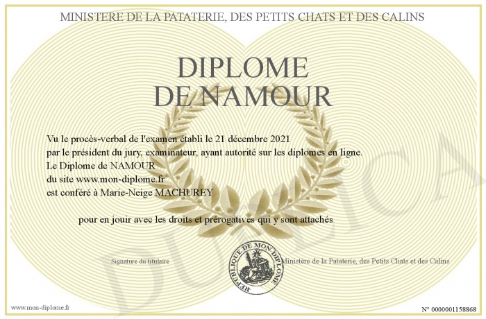 Envoyez par email votre Diplôme de NAMOUR personalisé