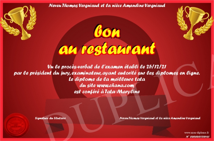 Envoyez par email votre bon au restaurant personalisé