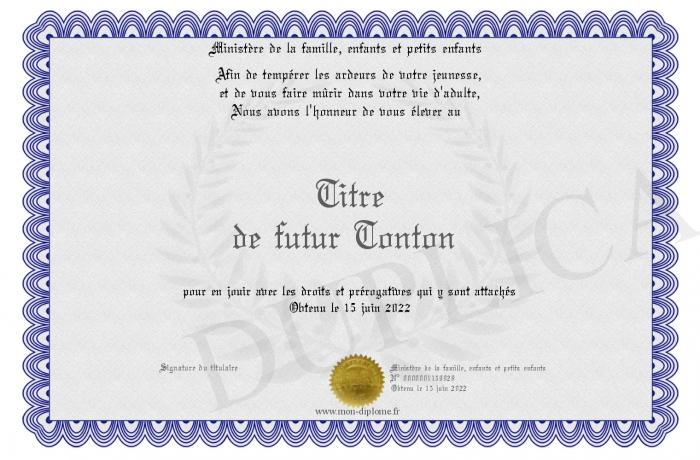 Envoyez par email votre Titre de futur Tonton personalisé