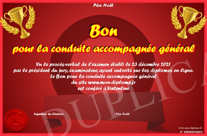 Envoyez par email votre Bon pour la conduite accompagnée général personalisé