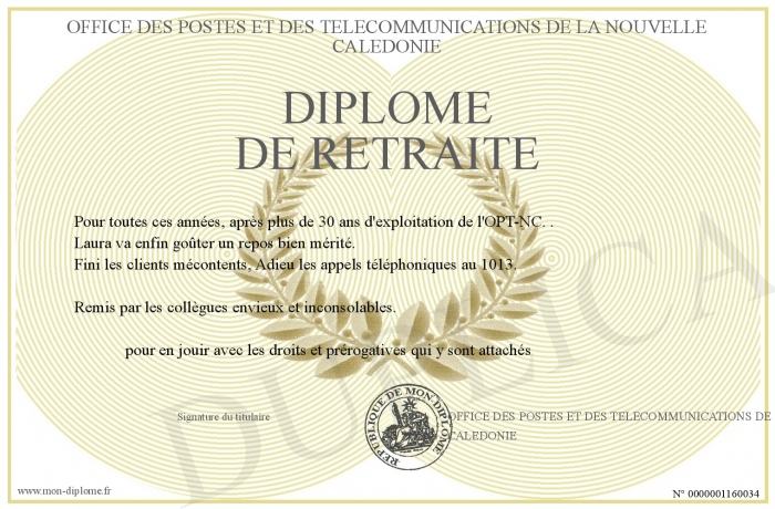 Envoyez par email votre Diplôme de RETRAITE personalisé