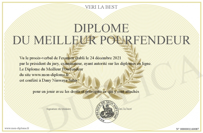 Envoyez par email votre Diplôme du Meilleur Pourfendeur personalisé