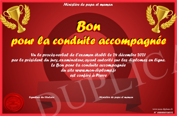 Envoyez par email votre Bon pour la conduite accompagnée personalisé