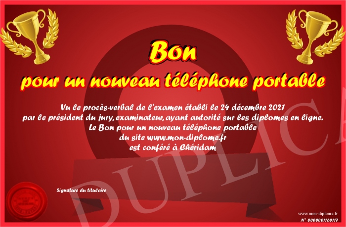 Envoyez par email votre Bon pour un nouveau téléphone portable personalisé
