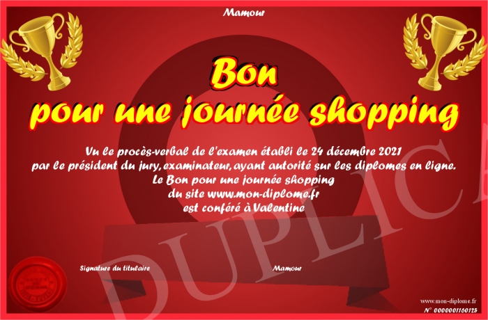 Envoyez par email votre Bon pour une journée shopping personalisé
