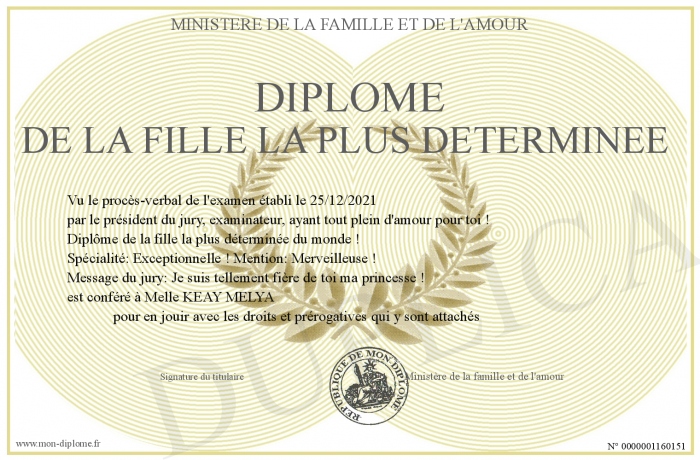 Envoyez par email votre Diplôme de la fille la plus déterminée personalisé
